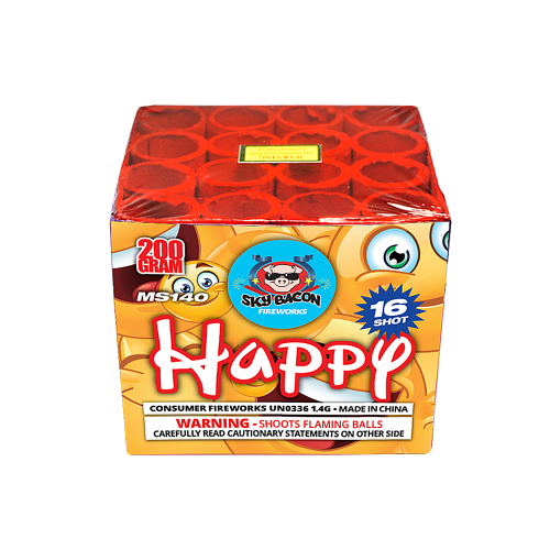 Happy (16 Shots) is a beloved fireworks classic, selling by the thousands each year. This multi-shot features 16 aerial bursts with alternating red and green breaks combined with lively firecracker reports. It’s an excellent value and a crowd-pleaser, perfect for family gatherings, backyard celebrations, and festive events.