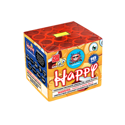 Light up your night with Happy (16 Shots) — a reliable, colorful, and fun fireworks choice for any occasion!