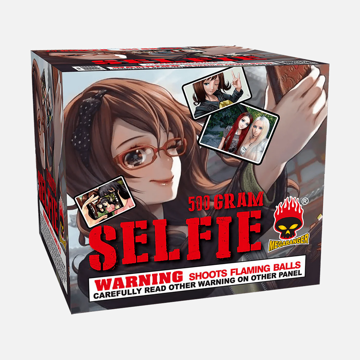 Strike a pose—Selfie™ lights up the sky with 20 shots of king brocade paired with silver, green, red, gold, and colorful strobes. It's bold, bright, and built to turn heads with every single blast.