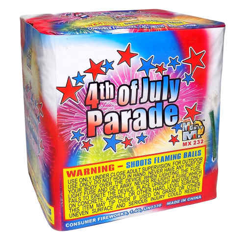 4th of July Parade is a patriotic powerhouse in a compact size. This 20-shot multi-shot cake fires off red, white, and blue effects with bold bursts and fast-paced energy. It’s a perfect addition to any Independence Day celebration, backyard party, or neighborhood display.