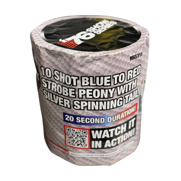 Blue to Red Strobe Peony w/Silver Spinning Tail 10-Shot Standard Aerial Cake