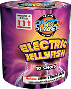 For a unique performance, look no further. This Pyro Planet feature item features big bursts of red and green glitter that transitions to blue/gold brocade tentacles. Pyro Planet best seller!