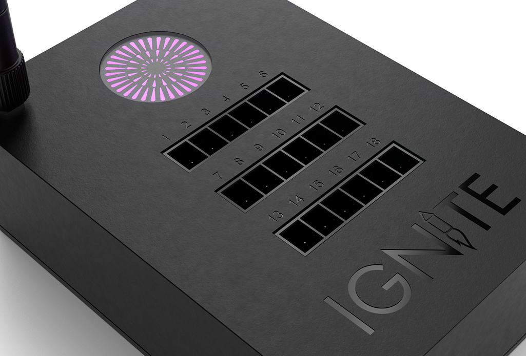 IGNITE is a reusable wireless fireworks firing system designed to shoot fireworks from your phone or tablet. Using the IGNITE App, you can control up to six IGNITE i18 modules for a total of 108 cues.