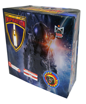 NEW ARTWORK* A fresh fan shaped 61 Shot 500-Gram, this finale cake features neon-colored crackling tails bursting into brilliant color strobes and flying fish! A rapid-fire volley of silver horsetails erupts to timed rain into an ending with vivid purple and blue strobing peonies.