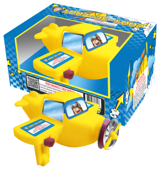 Our trick plane taxis forward with silver flowers, a silver shower and two jumping jacks, then the propeller rotates with silver flowers.