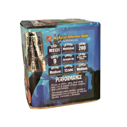 Cuba Libre serves up a refreshing display of green, blue, and silver tails followed by vibrant breaks of blue, purple, and gold. This compact cake may be small, but it delivers big on fun and color. Whether you're stocking a fireworks tent or putting on a backyard show, Cuba Libre is a top-selling item that customers love for its eye-catching effects and playful personality.
