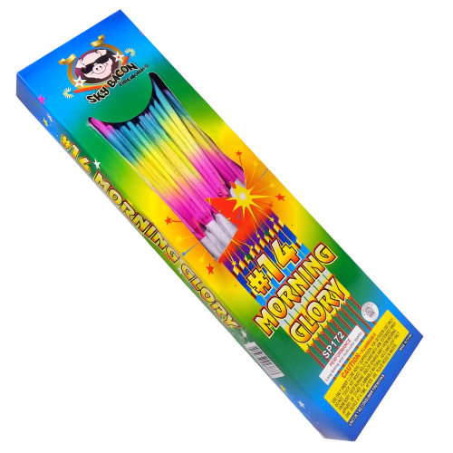 14 Morning Glory is a fan-favorite sparkler that combines bright colors with exciting crackling effects. This multi-stage sparkler burns through three different colors, creating a lively and entertaining display that’s perfect for celebrations of all kinds.