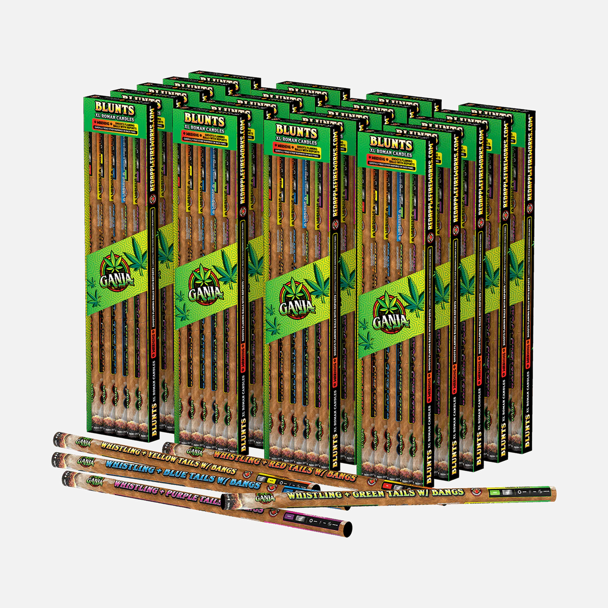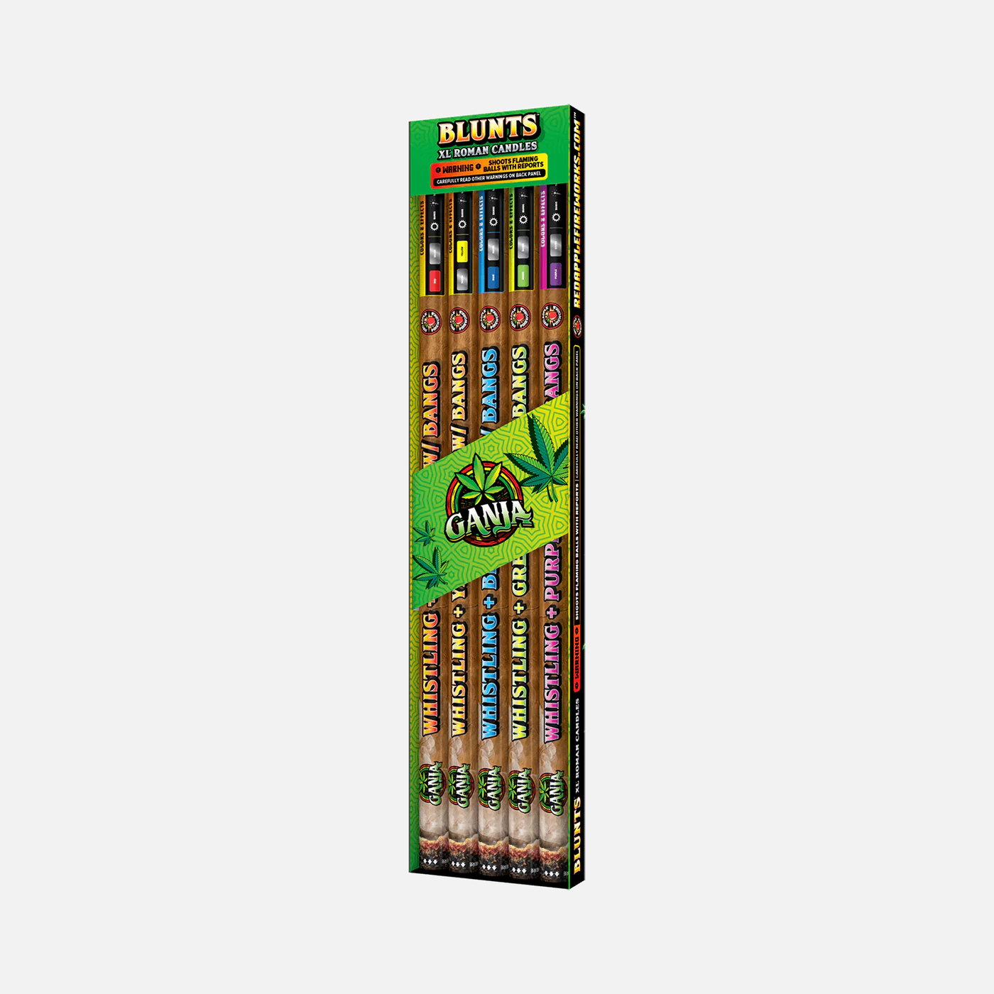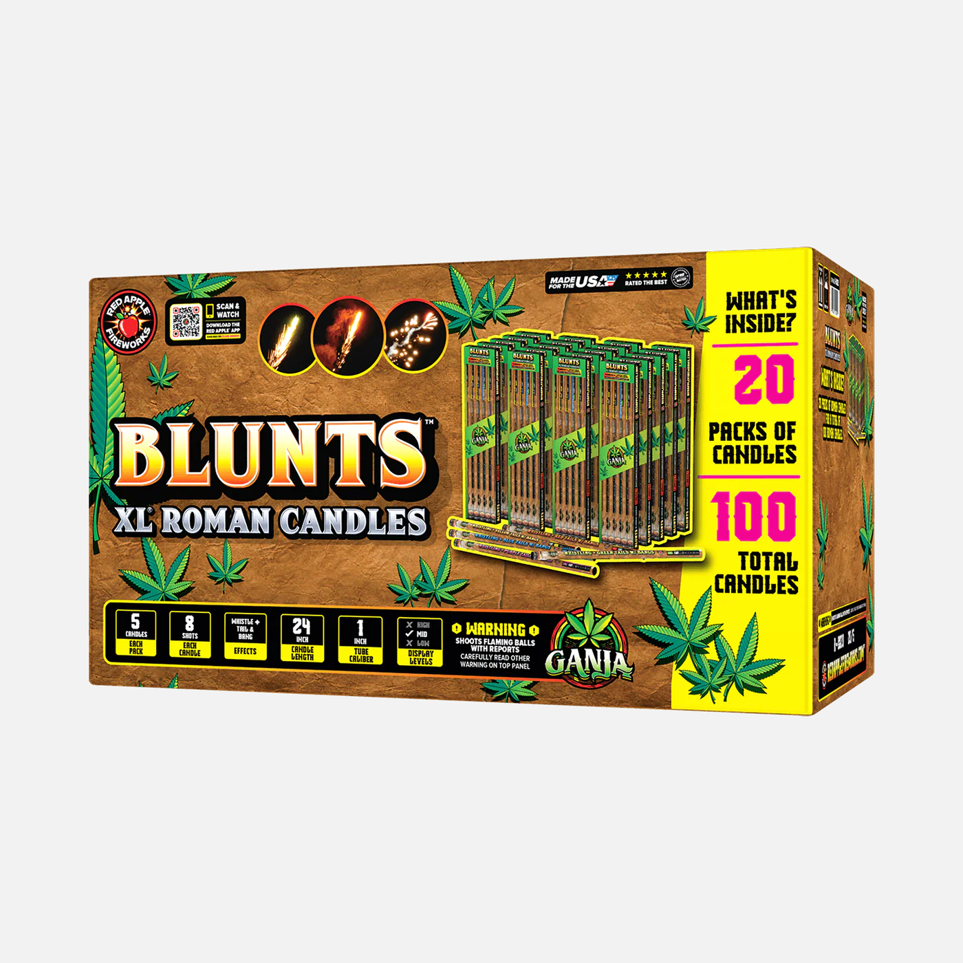 Grab the ganja and wraps. It's blunt night. The Blunts® XL® Roman Candles from Red Apple Fireworks® give new meaning to the phrase "lightin up the sky." With eight shots in each candle, you'll have a cut for every one in the neighborhood.