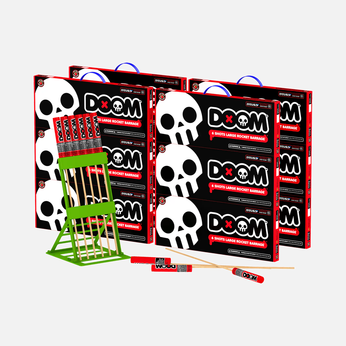 Blast the sky wide open with 6 SHOTS LARGE ROCKET BARRAGE™, part of Red Apple’s explosive DOOM™ line. Each XL rocket delivers a thunderous launch and massive, high-altitude effects—think crackling comet tails, color-changing bursts, and sky-shaking booms.