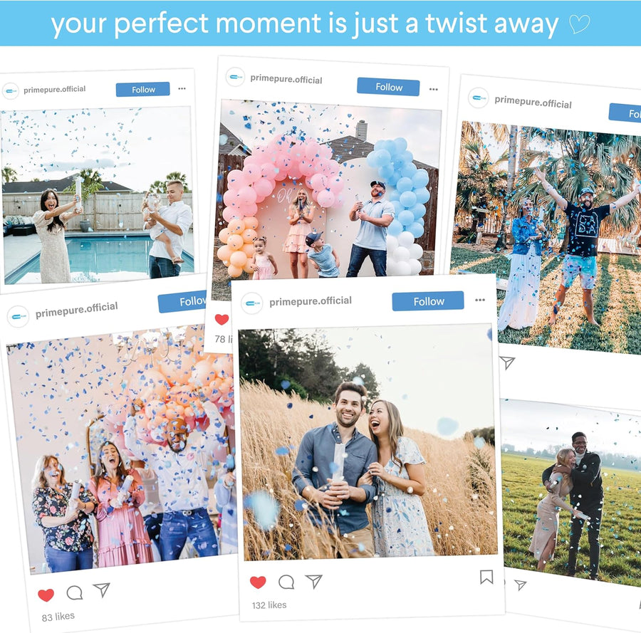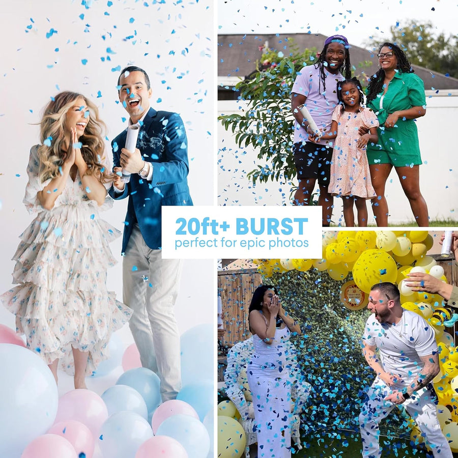 Keep everyone guessing until the gender reveal color cannons are launched and the pink confetti popper pops revealing the baby's gender.