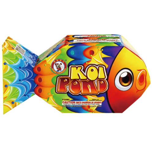 Koi Pond starts with a silver fountain, then color droplets to silk chrysanthemum and a crackling finale. An ocean of fun!