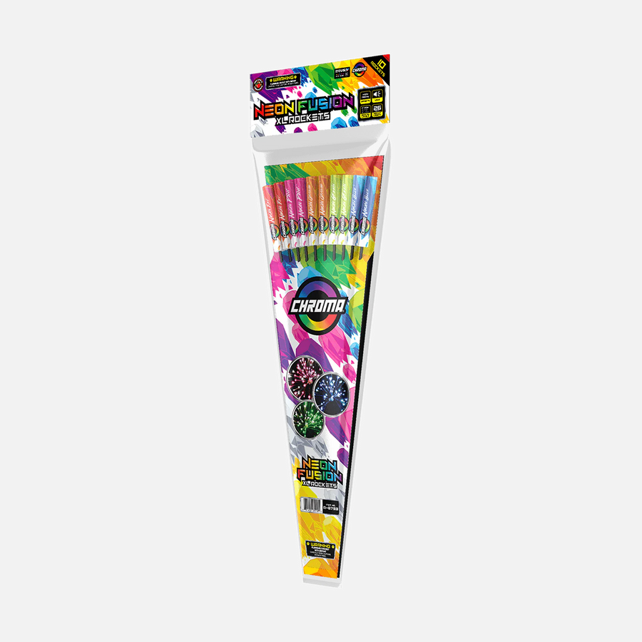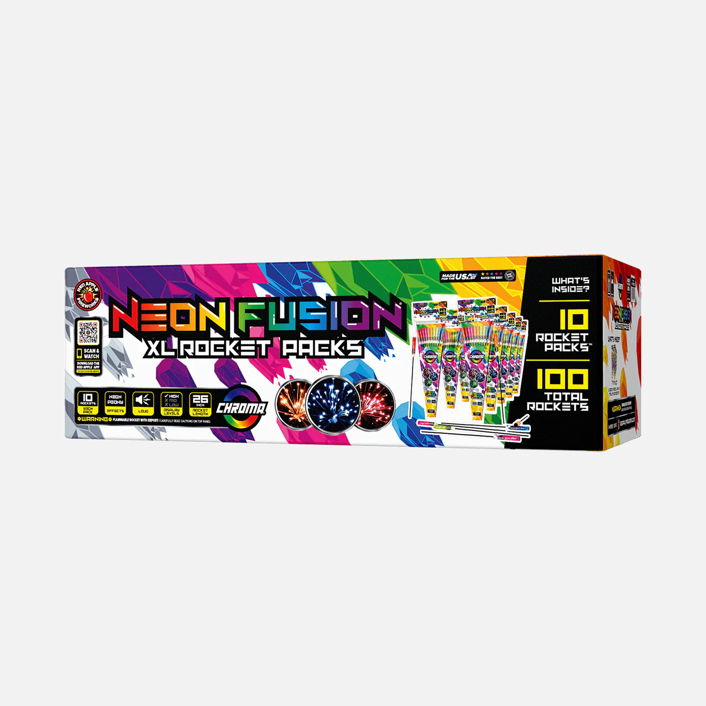 We packed some major rainbow and glitter into these Neon Fusion® XL® Rocket Packs™. Get loud & proud when you send these neon peonies streaking through the skies. ✨