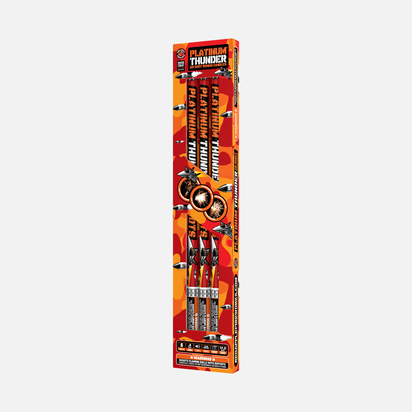 The Platinum Thunder 10-Shot Roman Candle delivers a precise sequence of vibrant aerial effects, expertly crafted for a dynamic fireworks display. Designed for reliable ignition and consistent performance, this Roman candle offers ten powerful shots that create a striking visual impact. Ideal for enthusiasts seeking professional-grade pyrotechnics, it combines quality construction with impressive bursts to elevate any celebration.